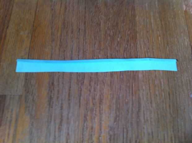 Cortar una tira de papel de la hoja de papel. Fijar el resto del papel, para uso futuro. Uno de los bordes laterales del interior de la tira, doblar un poco.