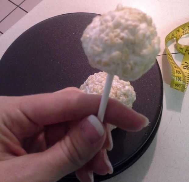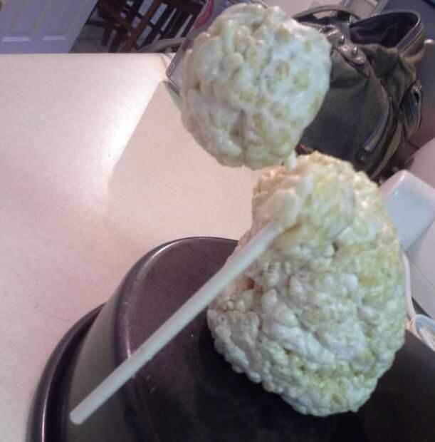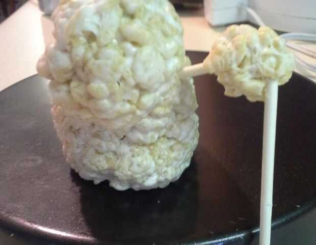 Toma otro palo e introduzca en uno de los hombros del cuerpo, ahora lo suficiente para que la parte inferior de la palanca es al ras con la parte inferior del cuerpo de Krispies de arroz. Este palo debe estar apuntando hacia abajo.