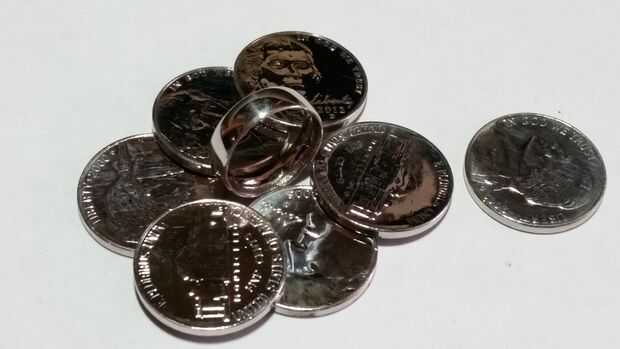 Mi novia ama los anillos! Supongo que no es malo, pero puede tomar un pedazo del presupuesto mensual. Querer hacer algo bonito para el día de San Valentín, he decidido que un anillo pinky sería un regalo agradable que no rompa el Banco. Después de haber visto algunas personas hacer anillos de plata casco, pensé que sería justo para su pinky tamaño 3 haciendo un anillo de cinco centavos.