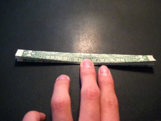 Luego doblar la ley precisamente en mitad a lo largo otra vez. Pliegue con firmeza.