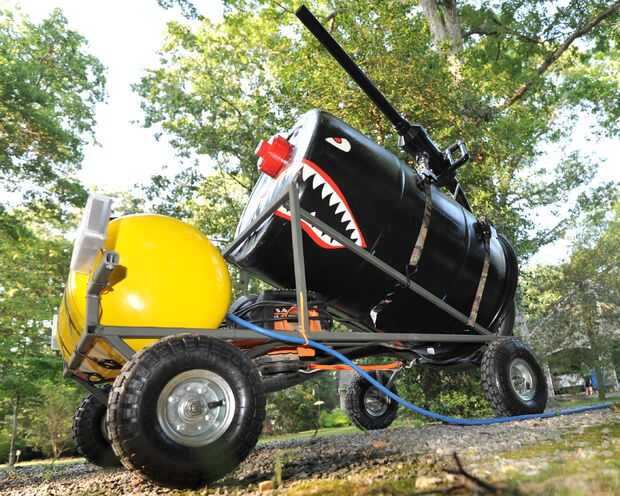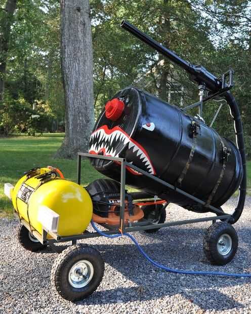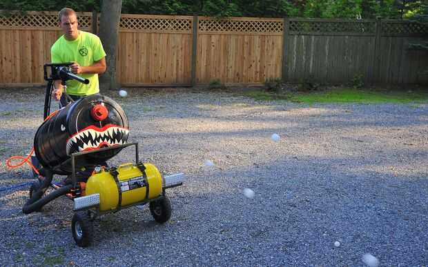 Sin embargo, el Ping Pong Ball aplastador es completamente diferente. Mediante la utilización de un sistema de baja presión suministrado por un vacío de la tienda estándar, alto volumen, el Ping Pong Ball Mauler puede lanzar cientos de bolas de un minuto, continuamente, sin tener que volver a cargar! Mediante la utilización de un poli de 55 galones tambor para más de 2500 pelotas de ping pong, el usuario puede mantener una rápida tasa de fuego siempre y cuando no hay munición izquierda. Tiene una máxima capacidad de 300 bolas por minuto de cocción (como atascos de nada). La mejor parte es que las bolas son tan ligero e inofensivo que fácilmente pueden ser utilizados para ataque y amigo desprevenido con (no olvide apuntar para el rostro como uno al ojo puede causar daño).