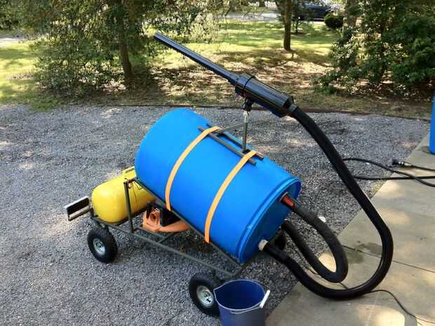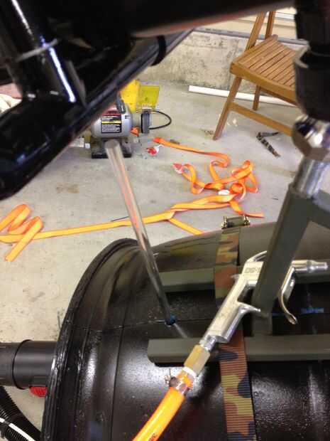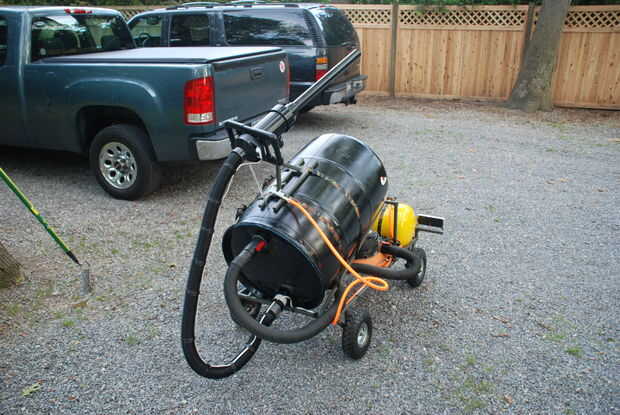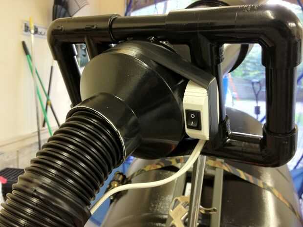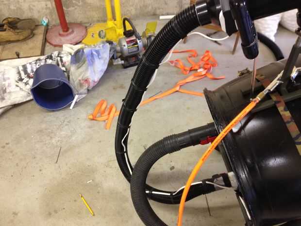3) Sujete la otra manguera de vacío de tienda para el tubo de PVC y el otro extremo al adaptador de manguera roscada NPT y tornillo en la parte inferior del cañón.