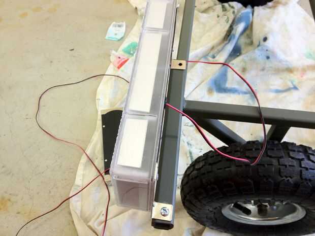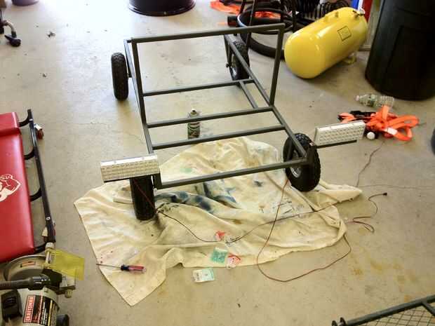 La fase de fabricación del proyecto se hace más o menos, ahora es sólo una cuestión de asegurar todo abajo y ensamblar los distintos componentes. Aquí, Pintamos el marco y las ruedas y luces.