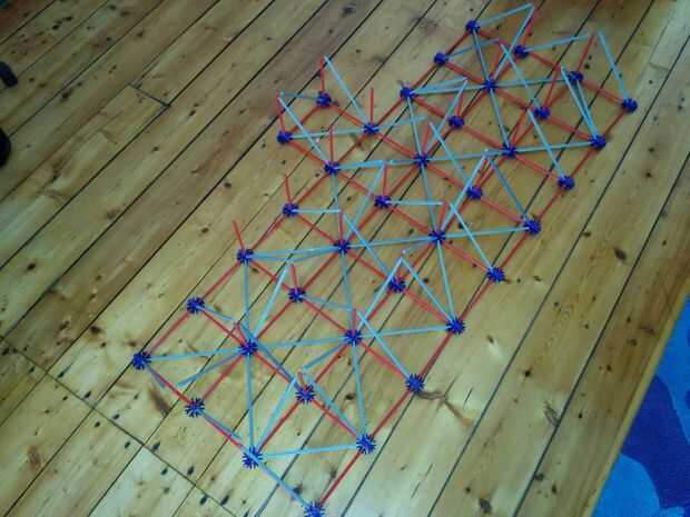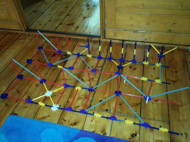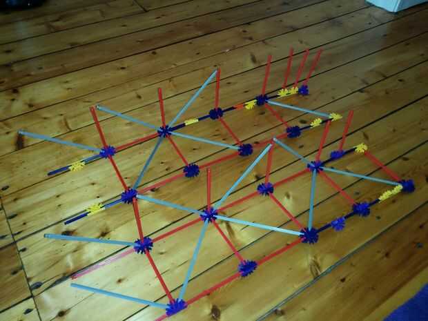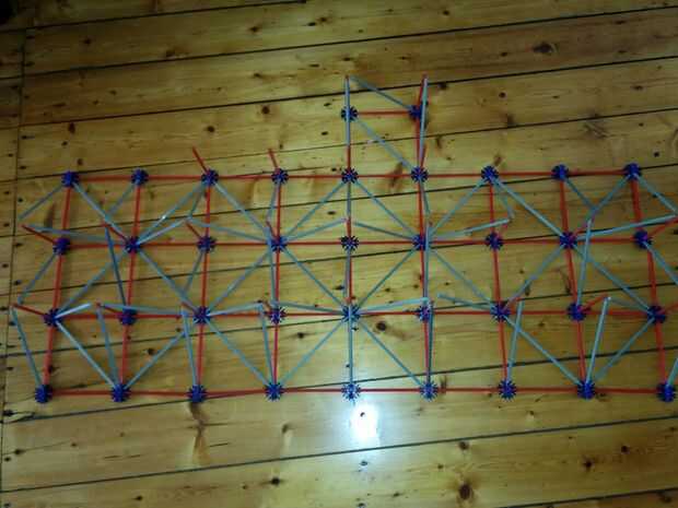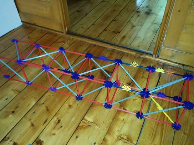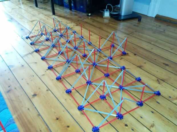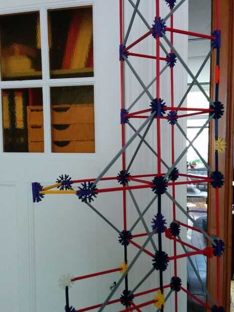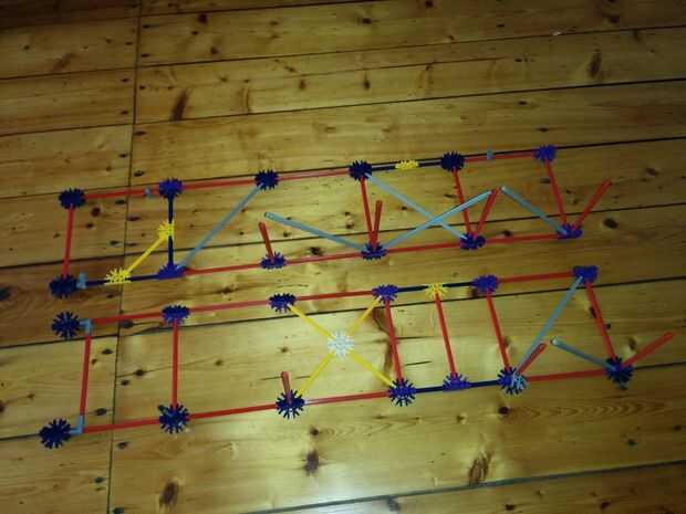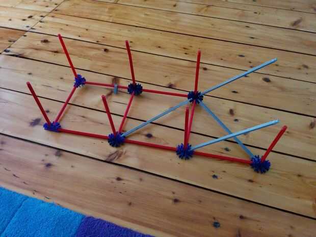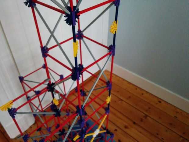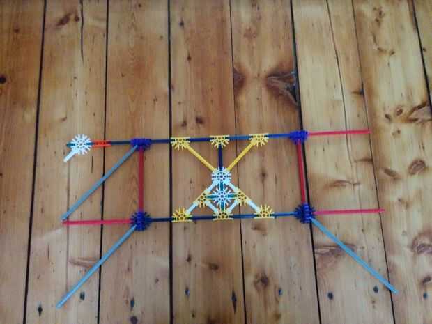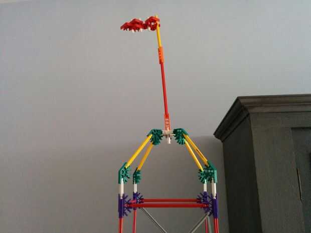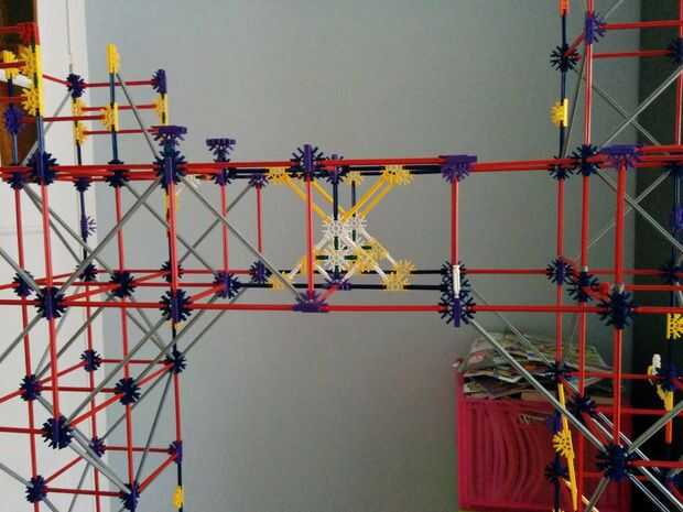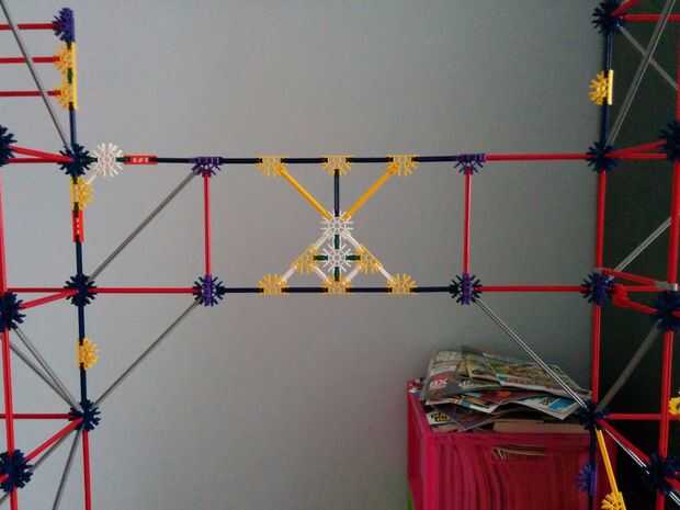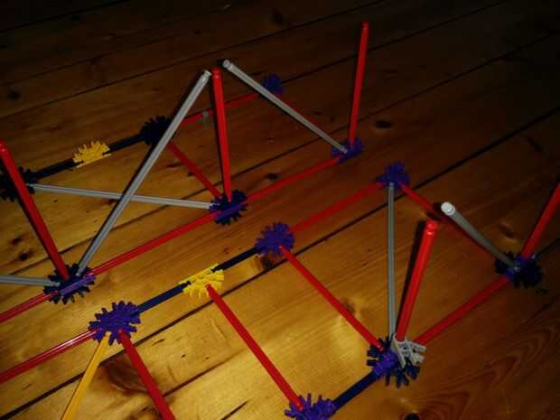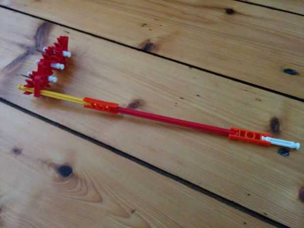 Ahora vamos a colocar las dos varillas rojo entre las Torres ya hemos construido. No olvides las pinzas gris otra vez!