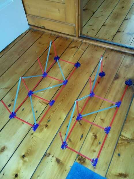 En el cuadro 5-7 usted verá cómo construir la torre más pequeña. Cuando haya hecho las dos partes que se muestra en la figura 4, que desea colocarlos juntos, como se aprecia en el cuadro 5. Entonces usted puede colocarlo en el extremo de la parte inferior del marco.