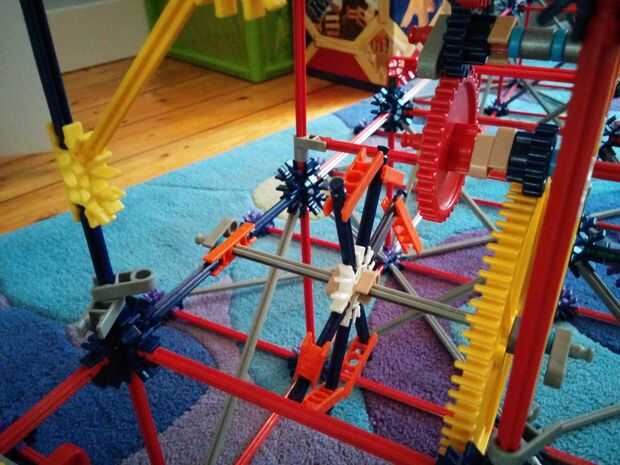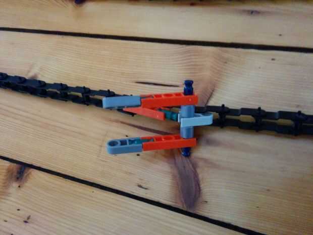 Ahora que hemos colocado los engranajes, podemos empezar con las cadenas. Sólo he puesto un sostenedor de la cadena para la pequeña torre grande. No porque me daba pereza, pero no quiero hacer la parte que vamos a construir en el siguiente paso se desborde con las bolas. Puedes ver cómo construir el titular en el cuadro 11. Cuando se coloca la cadena, una elevación completa.