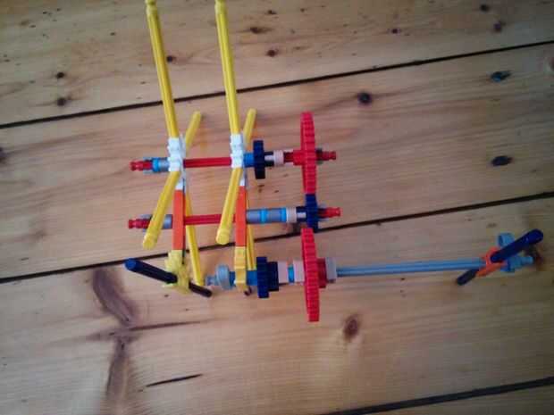 Ahora tenemos un lugar para la caída de las bolas. Es un artilugio bastante impresionante por mi padre. Si tus bolas caen demasiado tarde y no caen en la gota de lugar, que tendrás que hacer que la gota de lugar sólo un poco más. Pero para mí esto sólo funciona bien.