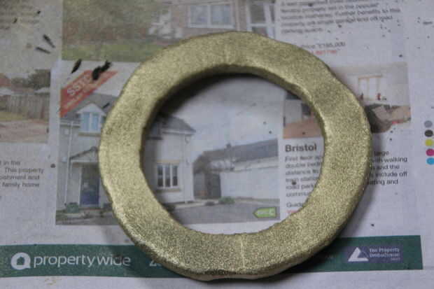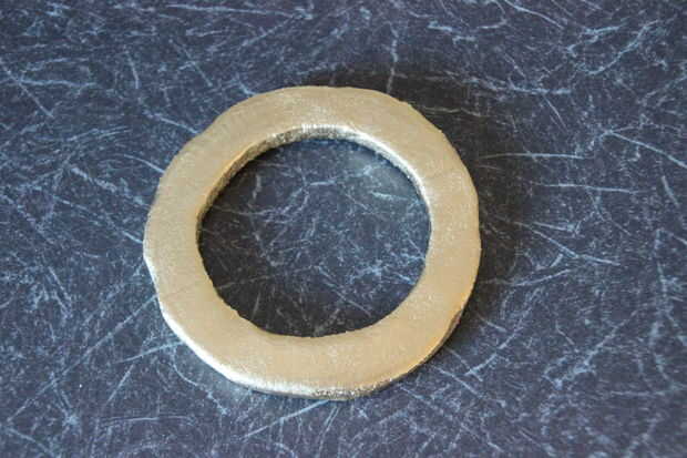 Dar la capa anillo 1 o dos capas si no calienta tratan el anillo en la parte 6 de "Paso 3: el anillo". Debe ser el color de la imprimación (gris para mí) con ninguno del color original que muestra a través de (verde para mí). Permitir tiempo suficiente para que la imprimación seque completamente, sin embargo muchas capas usan. Asegúrese de que todos los de la espuma con la cartilla, esto podría significar que usted tiene que entregar el anillo mientras la pintura esté húmeda. Alternativamente, un lado del aerosol y luego rocíe el otro lado cuando el primer lado esté seco.