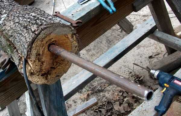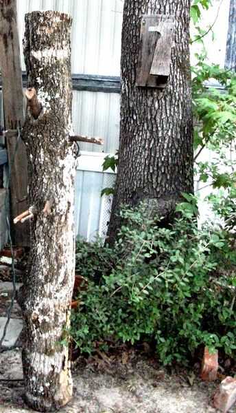 La izquierda lo único que es fijar el registro así que soporte, poner en el jardín y gancho para arriba! No pude encontrar una buena base para fijar el registro así que decidí perforar un agujero en la parte inferior del tronco y conducir una tubería en el suelo para sostenerlo para arriba. Llamé a mi esposa para asegurar la colocación en el jardín era de su agrado. Puse y hasta las luces del puente y bingo! Eso es todo.