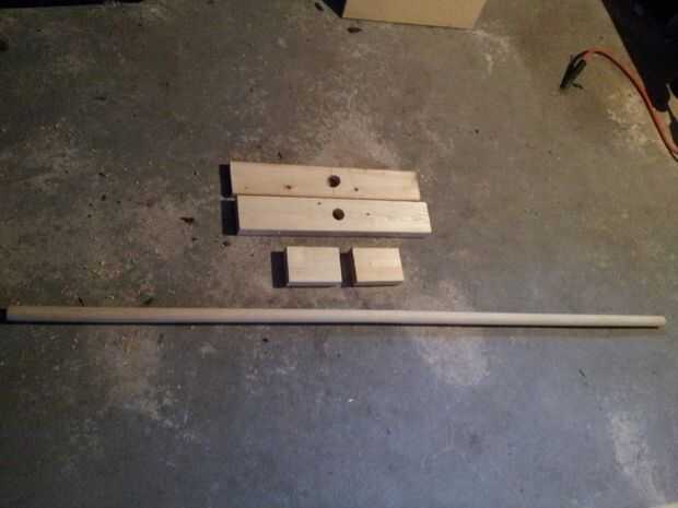 -Asegurarse de tener las piezas cortadas como se describe. -En el centro de ambos el 1 x 4 y 2 x 4 perfore un agujero de 1" para que la espiga se deslice en apretado.