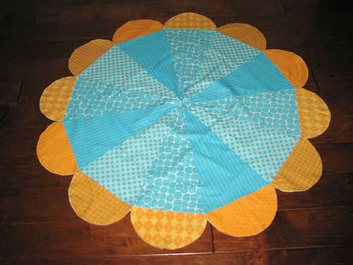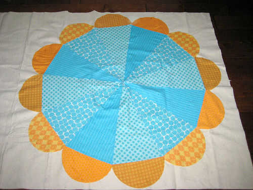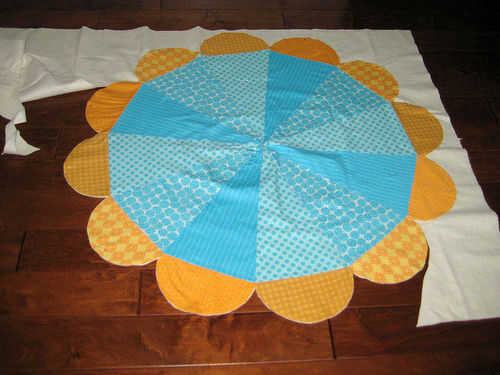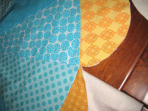 Coser a lo largo de las costuras que corren entre los triángulos y semicírculos. Retire los pasadores.