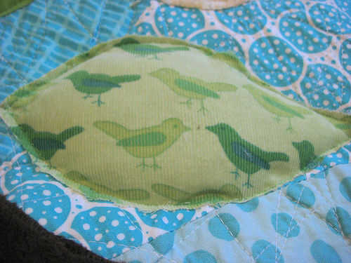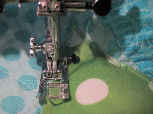 Zig zag puntada alrededor de cada hoja, para coser sobre cada abertura de relleno.