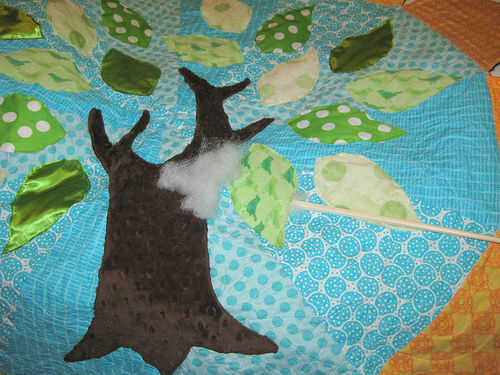 Usando el palillo, cosas un poco de polyfill en cada hoja.