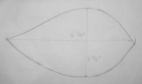 Esbozo a una hoja de 6 1/4" de largo y 3 1/2" alto. No añadir el margen de costura.