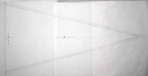 Un triángulo de 18" de largo y 9 7/16" de ancho. Añadir 1/4 costura todo alrededor. Cortar las esquinas.