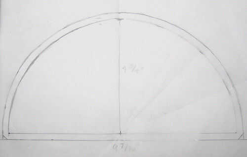 Un semicírculo 9 7/16" de ancho. Añadir 1/4 costura todo alrededor. Cortar las esquinas.