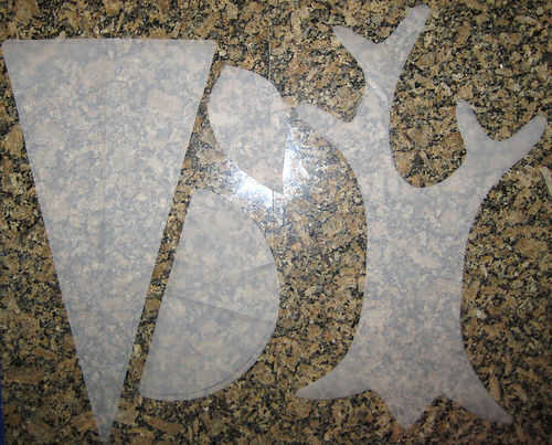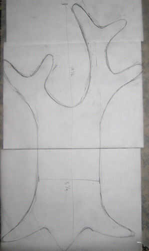 Esbozo de un tronco de árbol cerca 19 el 1/2" alto, 11" a través de las ramas y 4" a 5" en el tronco. No añadir el margen de costura.