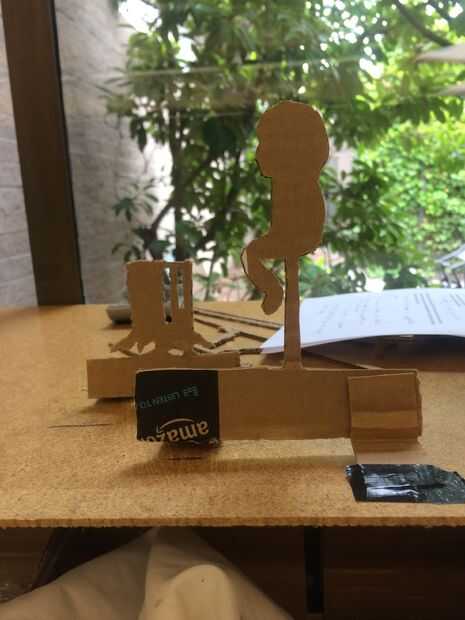 2. pegamento un lado la pieza de cartulina doblada a la base de la plataforma por lo que la otra mitad está tocando la mesa (o lo que el modelo descansa sobre).