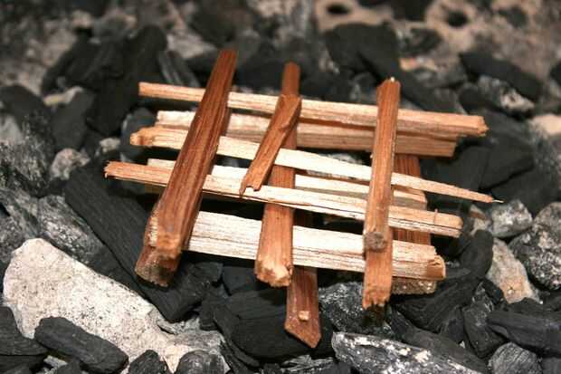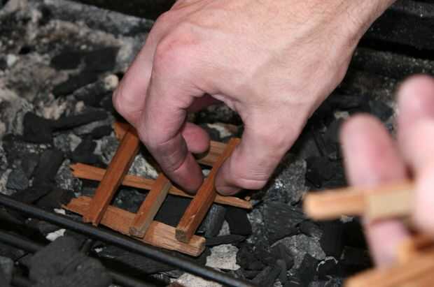 Para iniciar el fuego solo coloqué mi carbón directamente sobre la parrilla. Que cortar algunas ramitas de cedro pequeño y una pequeña pila con ellos. Claro su papel y colóquelo en el cedro apilado, luego mover el carbón encima del fuego.