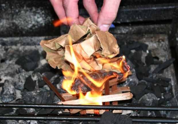 El fuego sólo debe tomar unos 5 minutos antes de que las brasas comienzan a Ascua en la capa inferior.