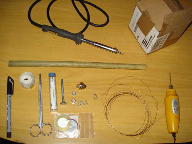 -1 trozo de hilo (cuerda de guitarra/banjo sería lo ideal, si usted no tiene que se puede pelar una pequeña longitud de línea que se lava, suelen tener un cable de buena anchura dentro de la base plástica)