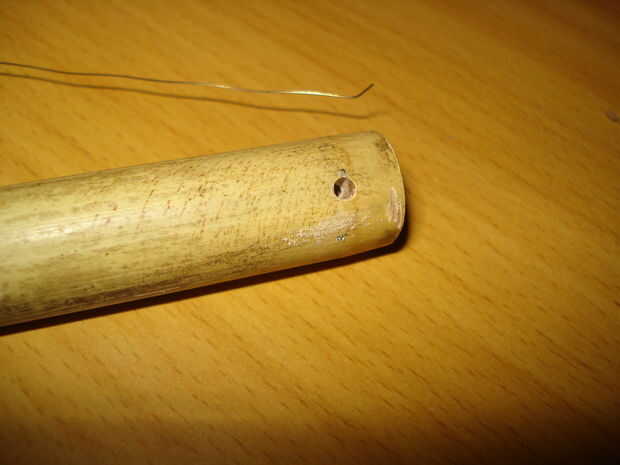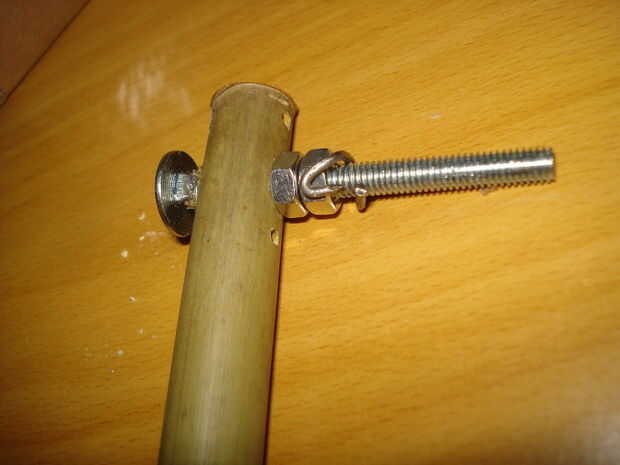 Inserte el perno en el orificio del medio, con el eje largo de la misma en la parte trasera del instrumento (ver primer paso si no lo he explicado correctamente)