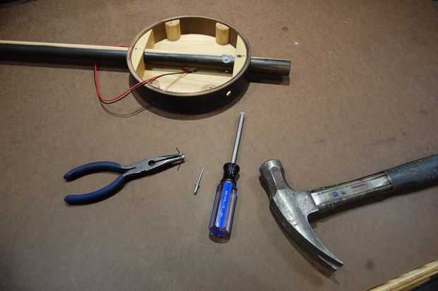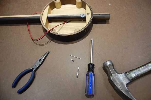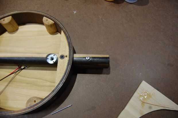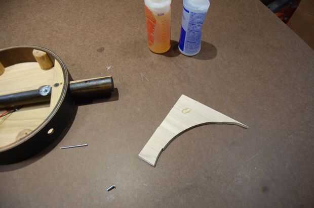 La secuencia de la guitarra funciona a través de un orificio en el extremo inferior del cuello. Sólo la puede realizar a través de la madera, pero bajo tensión, se mantenga cortar en las fibras de madera. Mi solución para esto era utilizar algunos cuerpos de remache. Sólo separados los cuerpos de los pasadores de mandriles y pegados uno a cada lado del orificio con resina.