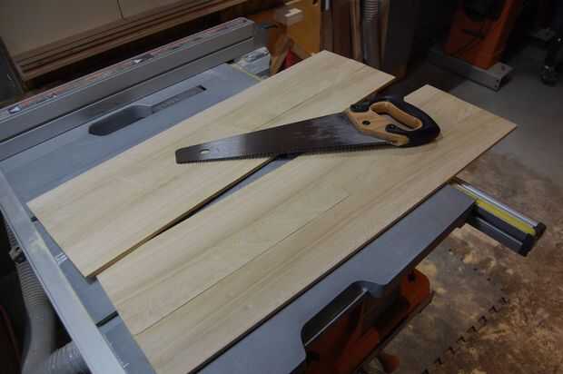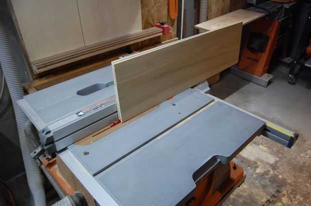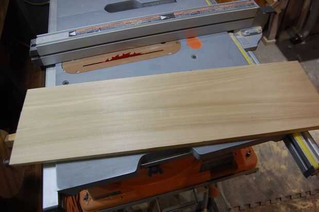 La Junta tenía era 3/4" densamente y quería que sea alrededor de 3/8" para un look más delgado y más resonancia. 8" es demasiado alto para mi sierra, usé la Sierra de mesa. En varias pasadas, había cortado una ranura en cada borde del tablero. Esta izquierda una sección media que luego tuve que acabar el corte con una sierra de mano, pero sólo tomó unos minutos.