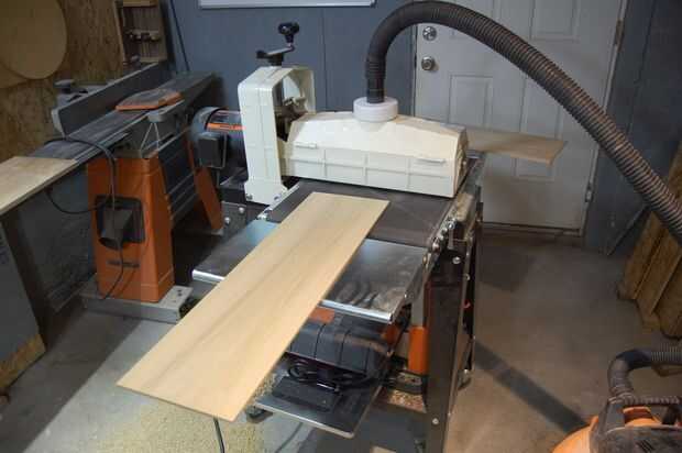 Para eliminar los puntos altos y lograr un espesor constante, corrí los tableros a través de la cepilladora y la lijadora de tambor. Mi lijadora de tambor tiene papel de lija de 80, por lo que actualmente lo utilizo más como lijadora de espesor de una lijadora de acabado.