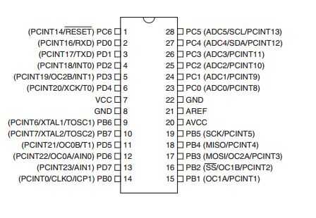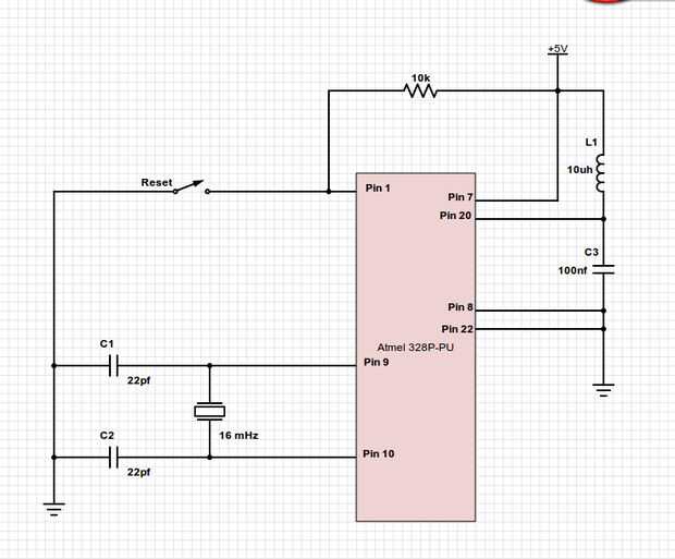 Comience por colocar el Atmel 328 en el protoboard. Conexiones y esquema proporcionado a continuación.