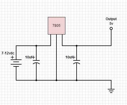 Regulador de 5v 7805; Pin 1 a potencia en 7-12vdc