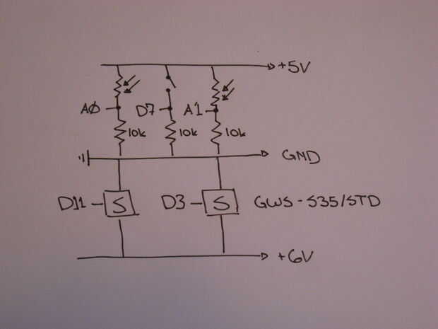 En mi fase de planificación que hizo no sólo vieron hardware y codificación pero hice mi tarea de la electrónica también. Yo quería elaborar una simple electrónica manual de reparacion para este proyecto así que podía seguir lo que estaba sucediendo como construido. Se pueden ver en la imagen los diferentes componentes, líneas de energía y los pines de Arduino. Que es un diagrama claro y también ilustra lo fácil que es la electrónica para este proyecto.