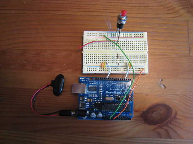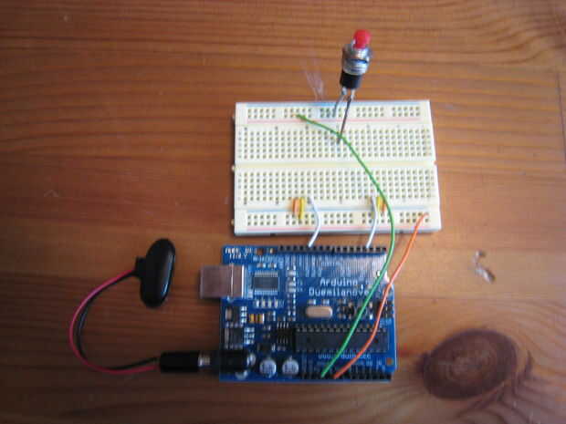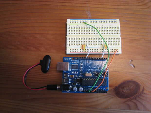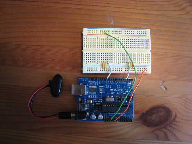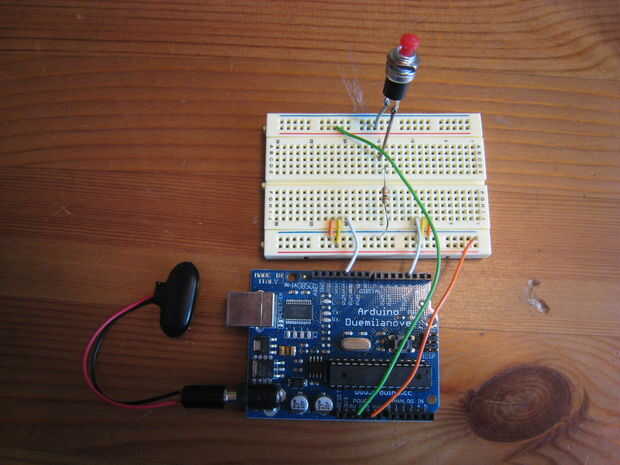 8. por último, conecte un cable de la tira con el interruptor y la resistencia en un extremo y colocar el otro extremo en la entrada digital 7 en el Arduino.