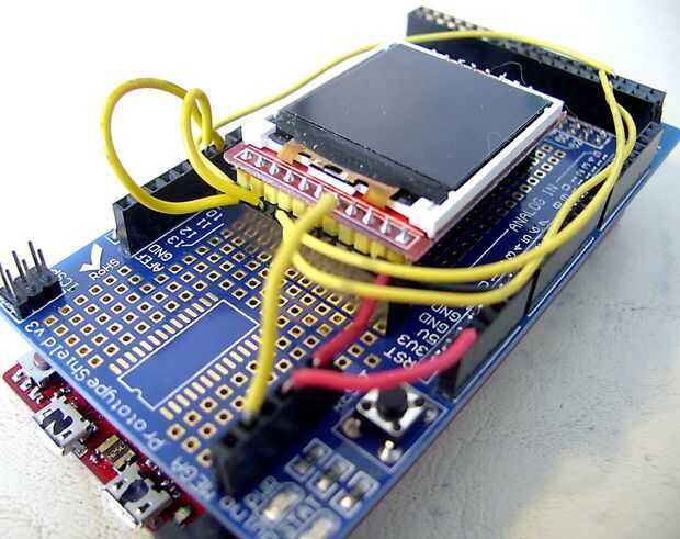Es ambiente de 5 voltios, puesto que hay un IC 74HC450 en la placa de circuito que funciona como una palanca de cambios de nivel. Éstos pueden obtenerse por apenas unos dólares en eBay y otros lugares, por ejemplo --$3,56 de China. Utiliza de Henning Karlsen biblioteca UTFT, y hace un buen trabajo con texto y gráficos. Nota que debido a los requisitos de memoria de UTFT, esta pantalla funciona con un estándar UNO sólo con trucaje extensa--sería necesario eliminar prácticamente todos los gráficos en el bosquejo y quedarse sólo con texto.