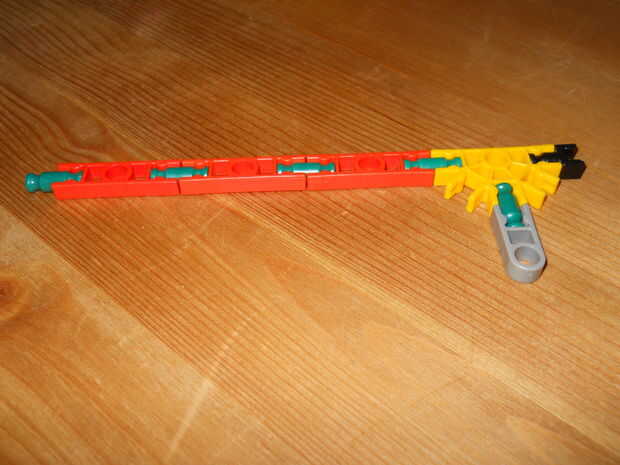 hice esta cosa ayer cuando estaba aburrido, construirlo tú mismo! se necesita 11 palos amarillos, 2 rojo/naranja palos, una corredera púrpura, 2 círculos de color blanco, palo blanco 1, 2 curvas amarillo, 1 curva verde, 1 pequeño palo verde y 1 curva