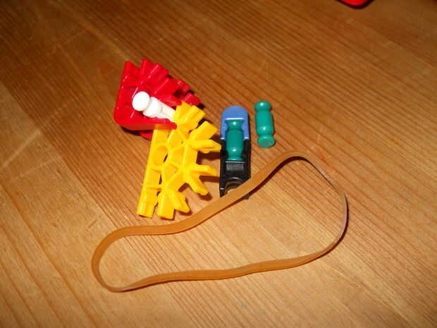 esta pistola puede lucir pequeña, pero confía en mí su muy de gran alcance con la banda elástica correcta.Paso 1: Obtener las piezas Estas son las piezas que necesita.10 anillos azules1 conector grisbarra azul 11 conector en Y negro1 conector naranja