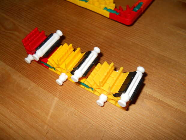 hice esta cosa ayer cuando estaba aburrido, construirlo tú mismo! se necesita 11 palos amarillos, 2 rojo/naranja palos, una corredera púrpura, 2 círculos de color blanco, palo blanco 1, 2 curvas amarillo, 1 curva verde, 1 pequeño palo verde y 1 curva