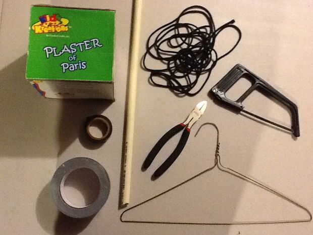 cinta, yeso de París, cinta aislante y poco de agua.