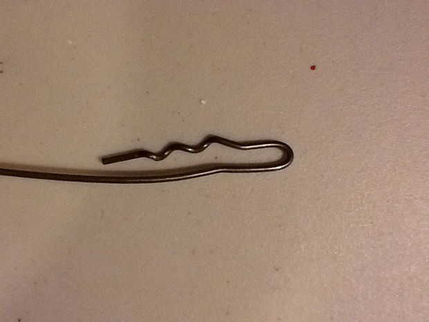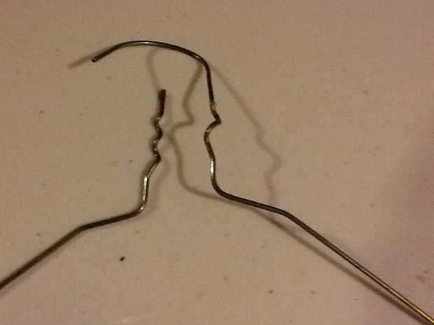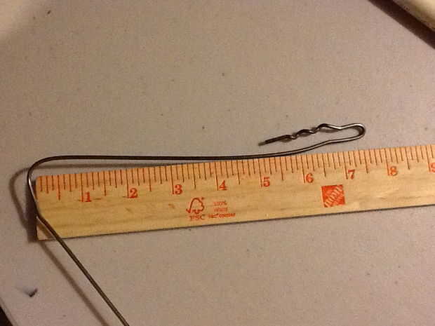 , Desarmar la percha primero un extremo de la curva por lo que parece el segundo pic (que es el anillo de claves). Después de eso, corte a cerca de ocho pulgadas de largo.