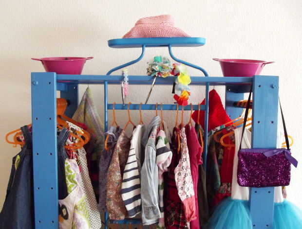 Después de pintar la estantería de Gorm azul I simplemente reorganizan los estantes y quitar el listón de madera del centro de la estantería superior para permitir que al valet espacio suficiente dar un vistazo a través de.