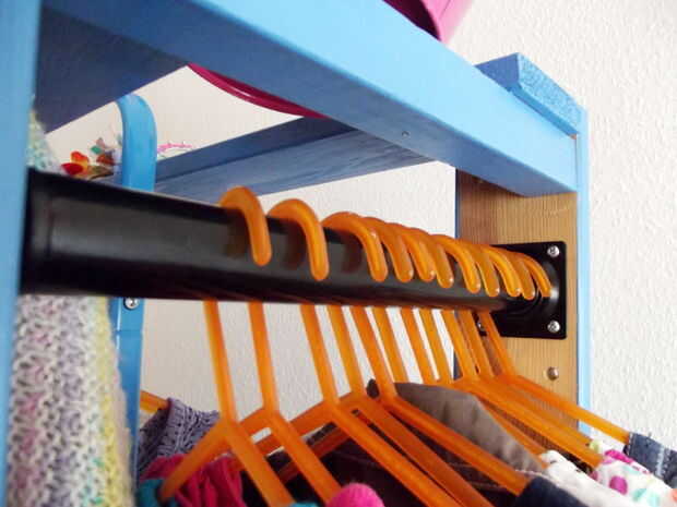 Luego añade un par de viejas patas de mesa en el interior de la unidad para más espacio de colgante.