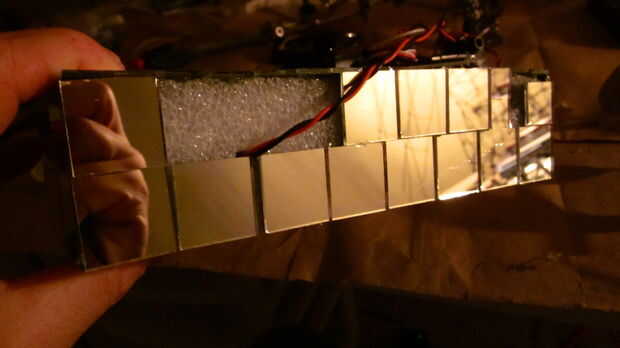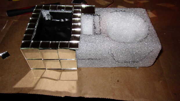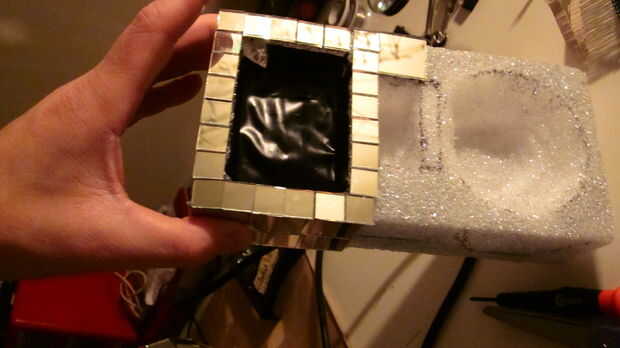 Dar la vuelta, añadir que un montón de espejos. Procure no quemarse en el pegamento o cortarse con el vidrio.