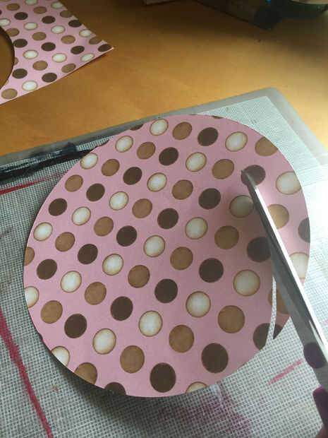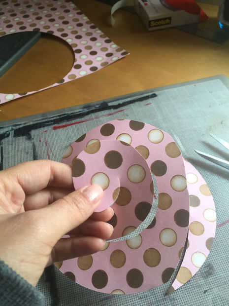 Desde el exterior de su círculo al centro de corte una espiral dejando un espacio en el centro de la base de la flor.