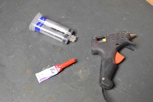 A diferencia de epoxy, caliente o pegamento son aceptables para utilizar en un aprieto pero no recomendamos utilizarlos como una forma principal para unir piezas juntos. Pegamento puede conseguir quebradizo y no forma un gran vínculo, y pegamento caliente es buena en ciertos materiales pero no en metales etc..