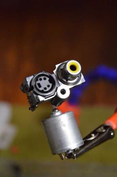 1. en la parte posterior de la entrada de vídeo, hay un par de biuts de alambre, doblar uno de estos abajo y enderezar. Esto va a ser el cuello y se unirá a la parte superior del motor.