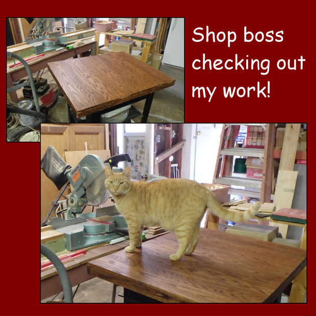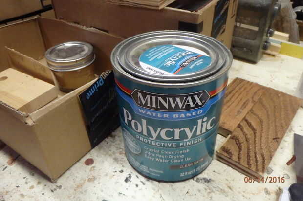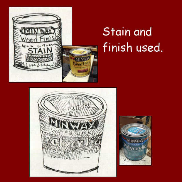 Cuando que seca, se lija la parte superior para limpiar alguna mancha alta o baja y para eliminar cualquier exceso. Luego se aplicó la mancha. Cuando se seca, la parte superior fue dado 4 capas de la capa de base de agua polycrylic.
