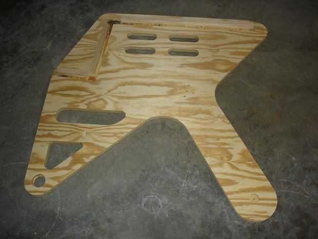 En caso de que algunas cosas han cambiado un poco durante assmebly sugiero hacer un papel o cartón de prueba versión de la consola central, así que usted puede hacer ajustes si es necesario. Asegúrese de que el pedal agujeros coincidan con los lados. Corte dos de estos hacer una versión de mano derecha y mano izquierda. Tornillos y pegamento en el asiento. Pongo una tapa/apoyabrazos opcional y una manija del gancho agarrador cobre.
