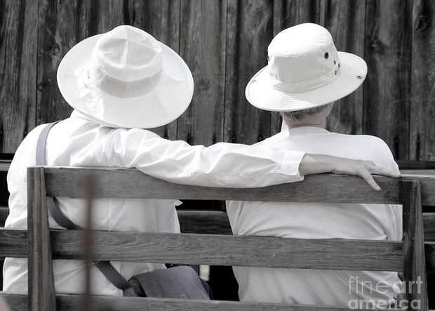 La segunda imagen, de la pareja en el Banco, con sus sombreros blancos casi coincidentes y camisas blancas, fue fijada apagado muy bien con la pared del tablero frente a los mismos y de las juntas del Banco sobre el que estás sentado. Esta fue una imagen en blanco y negro natural, debido a los contrastes.