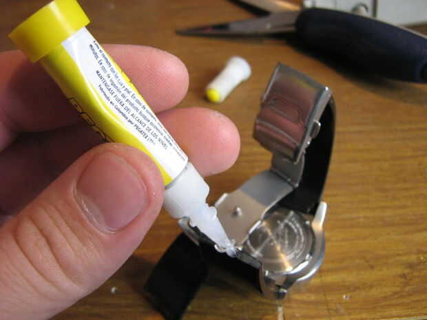 Pero nada como la experiencia empírica. Así, en un experimento no relacionadas, había reparado la banda rota de mi reloj favorito. Usé una bolsita negra. El pegamento fue sólo para mantener juntos los pedazos mientras Sugru seca (antes de este experimento, traté de reparar la correa con superglue solamente, y fue una mala idea).
