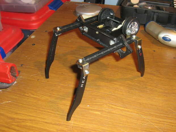 construir una hormiga robot que puede ser remota controlado o funcionar de forma autónoma. Usando un detector infrarrojo, se puede encontrar y recoger objetos. Es controlado por un microcontrolador de Picaxe 20 x-2.Mientras que esto es un robot basta